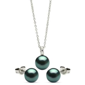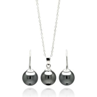 Julia Jewelry - Sterling Black Hanging Pearl/Necklace Set