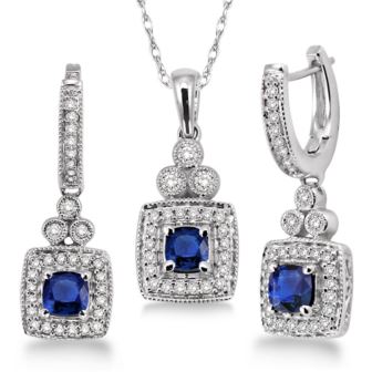 Jilco Inc - Diamond and Sapphire Earring and Necklace Set