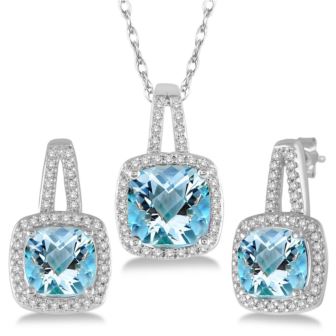 Jilco Inc - Aquamarine and Diamond Earring and Necklace Set