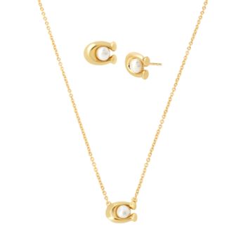 COACH - Tea Rose Necklace & Studs Gift Boxed Set - Pearl/Gold
