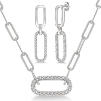 Jilco Inc - Diamond Paperclip Earring and Necklace Set