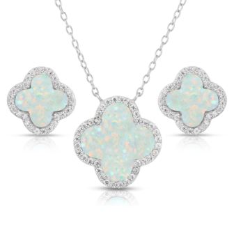 Jilco Inc - White Topaz and Diamond Earring and Necklace Set
