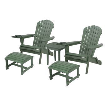 W Unlimited - Earth Collection Adirondack Chair w/Phone & Cup Holder, Set of 2 w/2 Ottoman & 1 End Table - Red