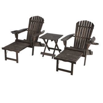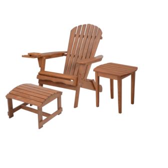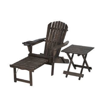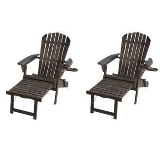 W Unlimited - Oceanic Adirondack Chaise Lounge w/Ottoman & Beverage Holder, Set of 2 & End Table - Walnut