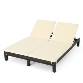 W Unlimited - Outdoor Wicker Adjustable Chaise Lounge w/Cushion - Brown/Beige