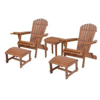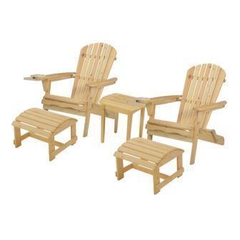 W Unlimited - Blizzard - 2 Foldable Adirondack Chairs w/Cup Holders, 2 Ottoman & End Table - Natural