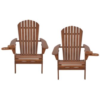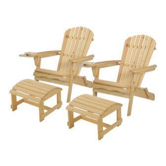 W Unlimited - Blizzard - 2 Foldable Adirondack Chairs w/Cup Holders & 2 Ottoman - Natural