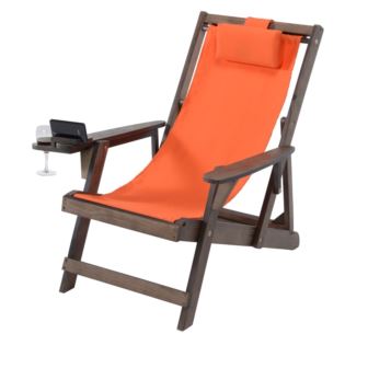 W Unlimited - Romantic Collection - Canvas Sling Chair w/Beverage Holder - Dark Brown, Orange