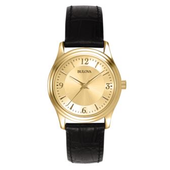 Bulova - Ladies Corp Coll Black Leather Strap - Gold Dial
