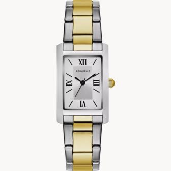 Caravelle - Ladies Rectangular Two-Tone SS Bracelet White Dial