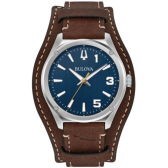 Bulova - Mens Corp Coll Black Leather Strap Watch- Gld Dial