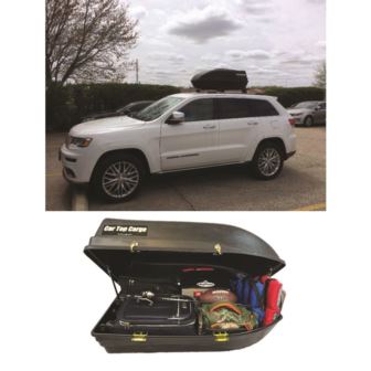 Perfect solution to compact vehicles and smaller SUVs that are space challenged when it comes to packing up for the cross-country road-trip. Enough space to fit camping gear, strollers and luggage. No- tool belt installation - has a simple U-bolt mounting system that securely attaches to most crossbar systems that do not exceed 3.75" in width. The secure mounting eliminates rattling and whistling during highway driving. Features dual locks and redundant bail latch system and side access opening to load and unload. Stores up to 110 lbs. 46.6"x27.4"x17.3"