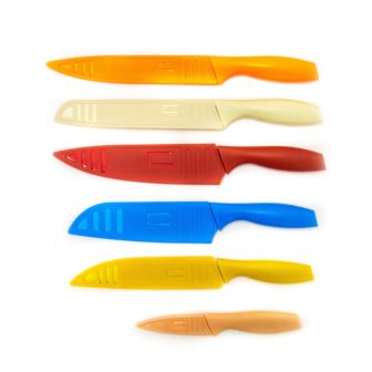 Every kitchen needs a complete knife set that can cut everything from meat, to vegetables and even bread; well look no further than this 12pc set featuring 6 vibrant colors including sheath covers for each knife. The knives are made of durable stainless steel with a non-stick coating that allows for easy food release while slicing and dicing which is a breeze thanks to the ergonomic handles that provide a safe and secure grip. Easy to clean with soap and water.