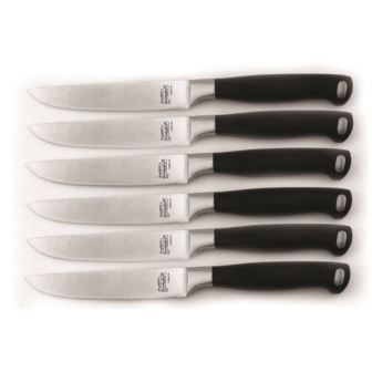 Bistro 6pc Knife Set is designed for both elegance and performance. Crafted from stainless steel, these knives feature a satin finish that enhances their sleek appearance while ensuring durability and corrosion resistance. The highly polished surface is hard wearing, thick, easy to clean and hygienic. The partially serrated blades effortlessly cut through meats, providing a precise and clean slice every time. Each knife boasts an ergonomic, comfort-grip handle, designed for ease of use and reduced hand fatigue. Compact and lightweight, these knives are ideal for both formal and casual dining. Serving up to six guests, this set combines functionality with style. Set includes: 6x Steak Knives 4.75"