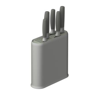 Add an extra touch of green into your kitchen with the recycled PP that's been used for the knife block and handles of this Leo Balance 6Pc Knife Block Set. With a perfect combo of modern design and practical features, this 6-piece knife block set is an asset in any kitchen. The knife block is equipped with a non-skid base for a secure placement and comes with a two-tone knife insert so you can alternate between grey and sage. Add to this the high-quality stainless-steel with non-stick coating and soft-grip handle and you'll be cutting, slicing, and dicing your way around the kitchen in no time! This non-stick coating also ensures ingredients won't adhere to the blade during use. Keep your knives safely organized, sharp, longer and ready to use in this universal knife block which can store up to 8 knives. This set includes Paring knife 3.5", Vegetable knife 4.3", Small chef knife 5.5", Chef knife 7.5", Bread knife 8.5", Knife block 9" x 9.25" x 3".