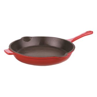 Neo 10" Red cast iron fry pan is a kitchen staple that every ambitious home chef should have handy. Fry your heart out with one of these pans - they're great for creating strong, even heat and they season as you use them. Cast iron has great heat retaining abilities and can be used on any heat source. Classic in a modern design, solid material for all your cooking needs! Oven safe up to 400°F.