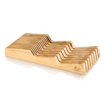 Keep your favorite Cangshan knives safe in your kitchen with this ergonomic in-drawer knife organizer. Made of beautiful bamboo wood, this holder will keep your blades protected from nicks and scratches that can happen when left loose in your kitchen drawers. Knives not included.