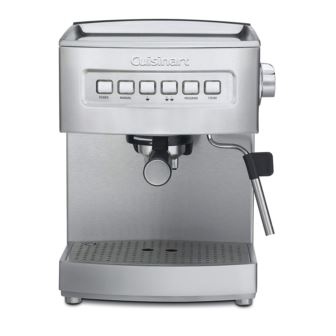 Want a single or double espresso? The choice is yours with the Cuisinart Programmable Espresso Maker! Program a single or double espresso and savor the rich flavors that Cuisinart brings out with 15 bars of pressure, or add hot water for an Americano, or add frothed milk for a creamy cappuccino or luscious latte. The stainless stem nozzle and frothing cup makes barista beverages easy. The Programmable Espresso Maker also features a cup-warming plate, removable drip tray, and cover for convenience.