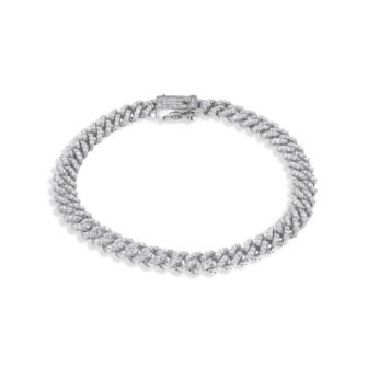 Men's 6.6MM CZ Encrusted Monaco Bracelet in Rhodium Plating over 925 Sterling Silver - 8"