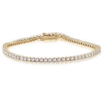 Wrap her wrist in the timeless embrace of this exquisite round lab-grown diamond tennis bracelet, a testament to the eternal bond you share. Crafted in the lustrous glow of 14K Yellow gold, each delicate link is a whisper of devotion, a promise of forever sealed in brilliance. Adorned with a radiant array of lab-grown diamonds totaling 4.00 carats, this bracelet glimmers with celestial beauty, capturing the essence of your love with every shimmering facet. Set in the flawless hues of EF color and boasting the clarity of VS1-VS2, each diamond shines with unparalleled purity, reflecting the depth of your affection with every gentle sway. As she adorns her wrist with this exquisite piece, let it serve as a tangible reminder of the infinite love you share, a beacon of light guiding you both on your journey together. Gift her not just jewelry, but a timeless treasure that speaks to the depth of your commitment, destined to adorn her with grace and elegance for eternity.