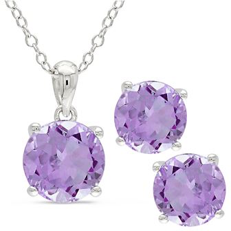 Add a splash of passionate purple to set the mood. Classic stud earrings and necklace set, 5mm round amethyst, sterling silver,18" cable chain.