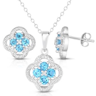 Jilco Inc - Blue Topaz & Diamond Quatrefoil Earring & Necklace Set