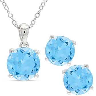Genuine blue topaz loves to dance in the light of life's best moments. Classic stud earrings and necklace set, 5mm genuine round blue topaz, sterling silver, 18" cable chain.