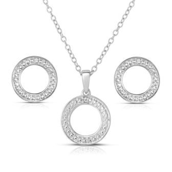 Glamorous geometric earrings and necklace- with diamonds! Surround yourself with these beauties. .03twt round diamonds set in sterling silver. Pierced earrings only. 18" cable chain.