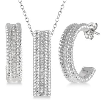 Jilco Inc - Diamond Hoop Earrings & Diamond Pendant Necklace Set