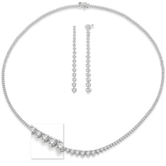 Show. Stopper. This allover 14k white gold diamond earrings and necklace set features 6.00twt round brilliant-cut diamonds. Designed with a graduated silhouette this set shines at any and every angle. This stunning Riviera earrings and necklace embodies red carpet glitz and glam. The necklace is secured with a box clasp and safety latch for extra security. Push back earrings.