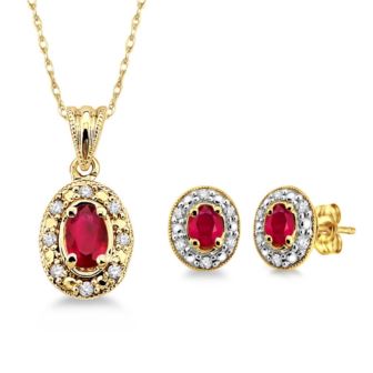 Beautiful ruby & diamond earring and necklace set. .15twt round brilliant cut diamonds, genuine rubies, 14k yellow gold. 18" cable chain. Matches well with ring JR424-R.