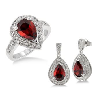 Jilco Inc - Garnet & Diamond Earring and Ring Set
