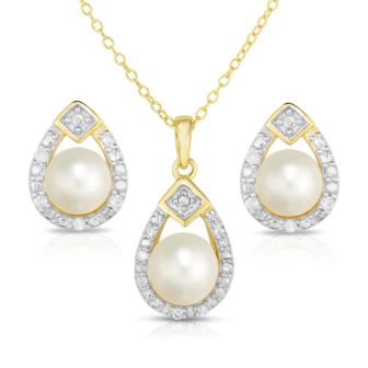 Jilco Inc - Pearl and Diamond Earring & Necklace Set