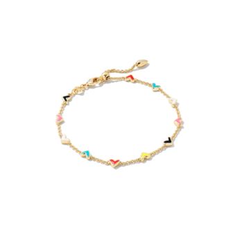 A funfetti sprinkling of hand-painted hearts, the Haven Gold Heart Chain Bracelet in Multi Mix is the sweetest accessory to give or receive all year long. 6.9'L with 0.7'L extender, 0.28'W
