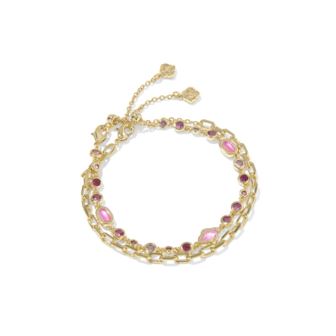 What's better than one icon? Two! Meet the Mini Elisa and Abbie Gold Set of 2 Delicate Chain Bracelets, sure to be your next wrist stack staples. Unique chain detailing topped off with our iconic shapes make this look a chic staple. Want to add even more glam? Pair them with the Mini Elisa and Abbie Strand Necklace. Metal: 14k Yellow Gold Over Brass. Stone: Pink Crystal, Azalea Illusion, Light Red Crystal, Raspberry Crystal, White CZ. Closure: Lobster Clasp W/ Single Adjustable Slider Bead. Size: 8"L Inner Circumference.