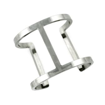 An incredibly versatile and modern cuff bracelet made with gleaming silver tone metal. Give your look a subtle touch of glamour with this open concept design by Vince Camuto. Sleek with geometric style, this bold cuff accents an urban-inspired outfit. And has a polished silver tone finish.