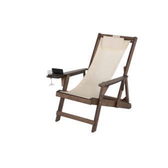 Enjoy lounging in your backyard or on the beach with this solid wood sling chair. The interchangeable beverage holder keeps your favorite beverage close whether it is a cup of tea or a glass of wine. Canvas style seating conforms to your body, and the extra wide armrests add comfort. The foldable design makes portability and storage a breeze. Includes one sling chair.