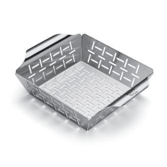 A grill basket gets your Weber grill primed for side dishes. Add chopped veggies to the pan and place it on the grill alongside the main entree. Makes grilling delicate or small foods easy. Fits all Weber charcoal, gas and electric grills.