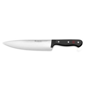 Give your kitchen an extra edge with this Wusthof 1025044820 Gourmet 8'' cook's knife with POM handle. Polished by hand, this cook's knife is an all-purpose kitchen knife that can be used for chopping, mincing, slicing, and dicing. Its weight balance makes it perfect for cutting thick veggies and meats. Wusthof's Gourmet line offers chefs the perfect mix of quality and value; all pieces are laser-cut stamped and feature durable POM handles to meet your every need.
