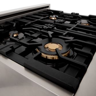 Enhance your kitchen space with ZLINE professional range brass burners (sold separately). Designed to create the ultimate luxury experience, these burners bring unparalleled efficiency and easy usability to everyday cooking features. Composed of a premium grade brass material, these burners are engineered for durability and built-to-last quality. ZLINE's proprietary brass burners give each range an elevated, timeless pop of color while providing enhanced cooking benefits. Not only will you achieve a luxury look, but the brass material provides superior heat retention, and even flame distribution. Contains corrosion, stain, and grime-resistant properties