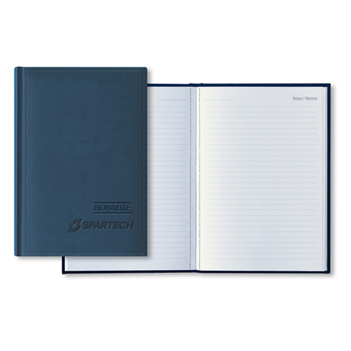 Measuring 5 7/8" x 8 3/8", this giveaway includes 128 white lined pages with modern gray printing, perforation along the spine for easy removal and our most popular cover with a smooth soft texture that's often mistaken for leather.  This is a great choice for tradeshows, conventions and much more!