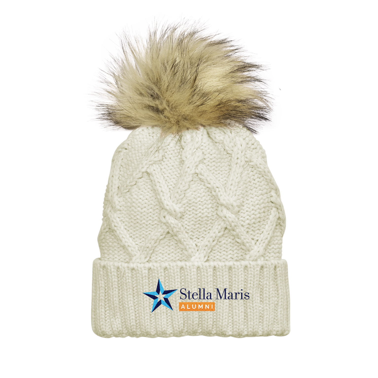 Totally on-trend, this ladies beanie has a thick ribbed cuff and a cable knit crown that¿s topped off by a fun faux fur pom.