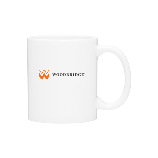 11oz ceramic mug with glossy colored exterior and glossy colored interior. Features our brand.