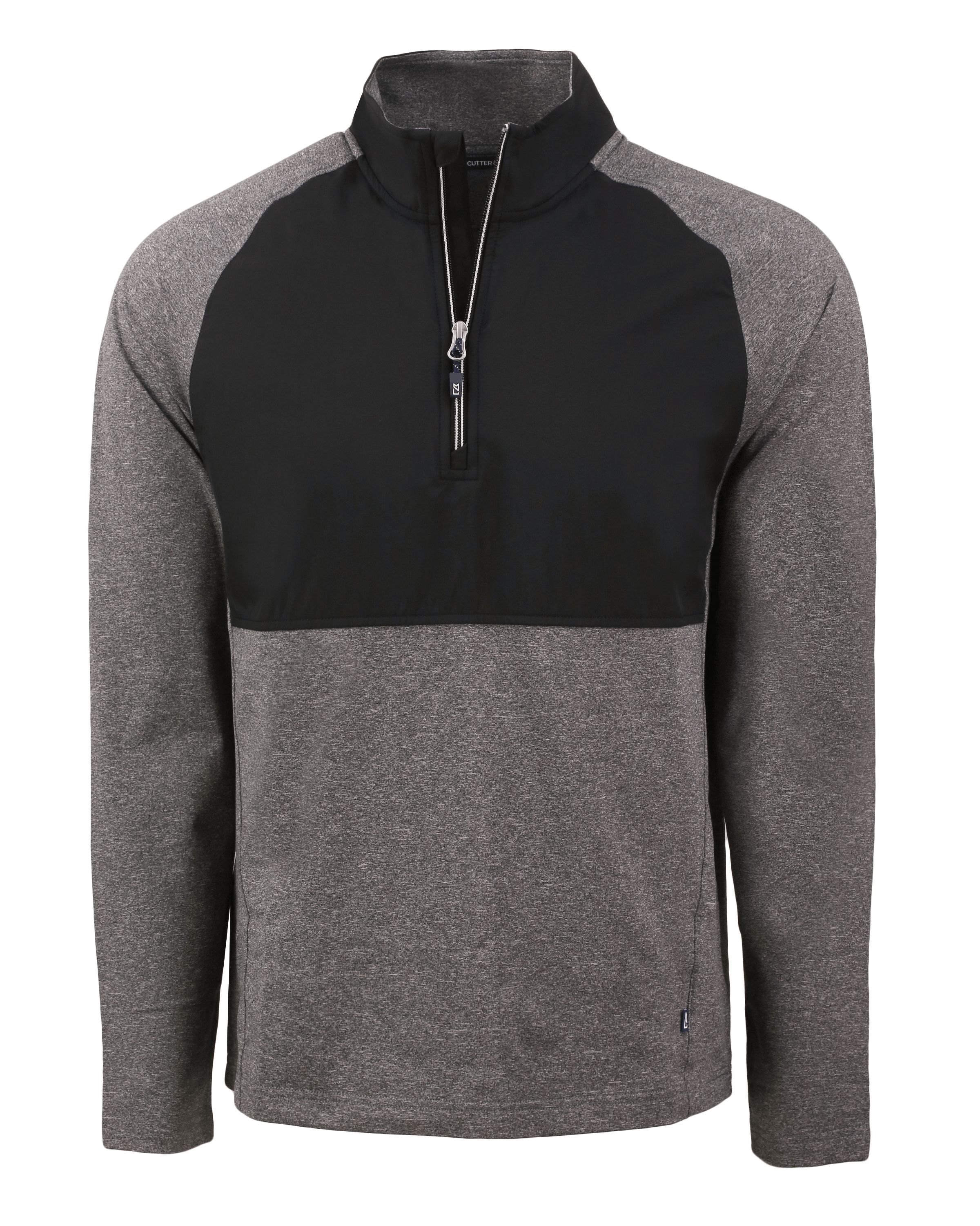 The iconic Cutter & Buck Adapt Recycled Soft Knit Stretch Mens Hybrid Quarter Zip Pullover is engineered for exceptional versatility, designed as your favorite men's quarter zip for your active life: work, golf, tennis, travel, or any everyday adventure. Eco Knit Hybrid quarter zip features a high quality certified eco-friendly recycled shell to give you a balance of wind-resistance, stretch, and lightweight warmth for year round layering so you can do more for you and your planet.