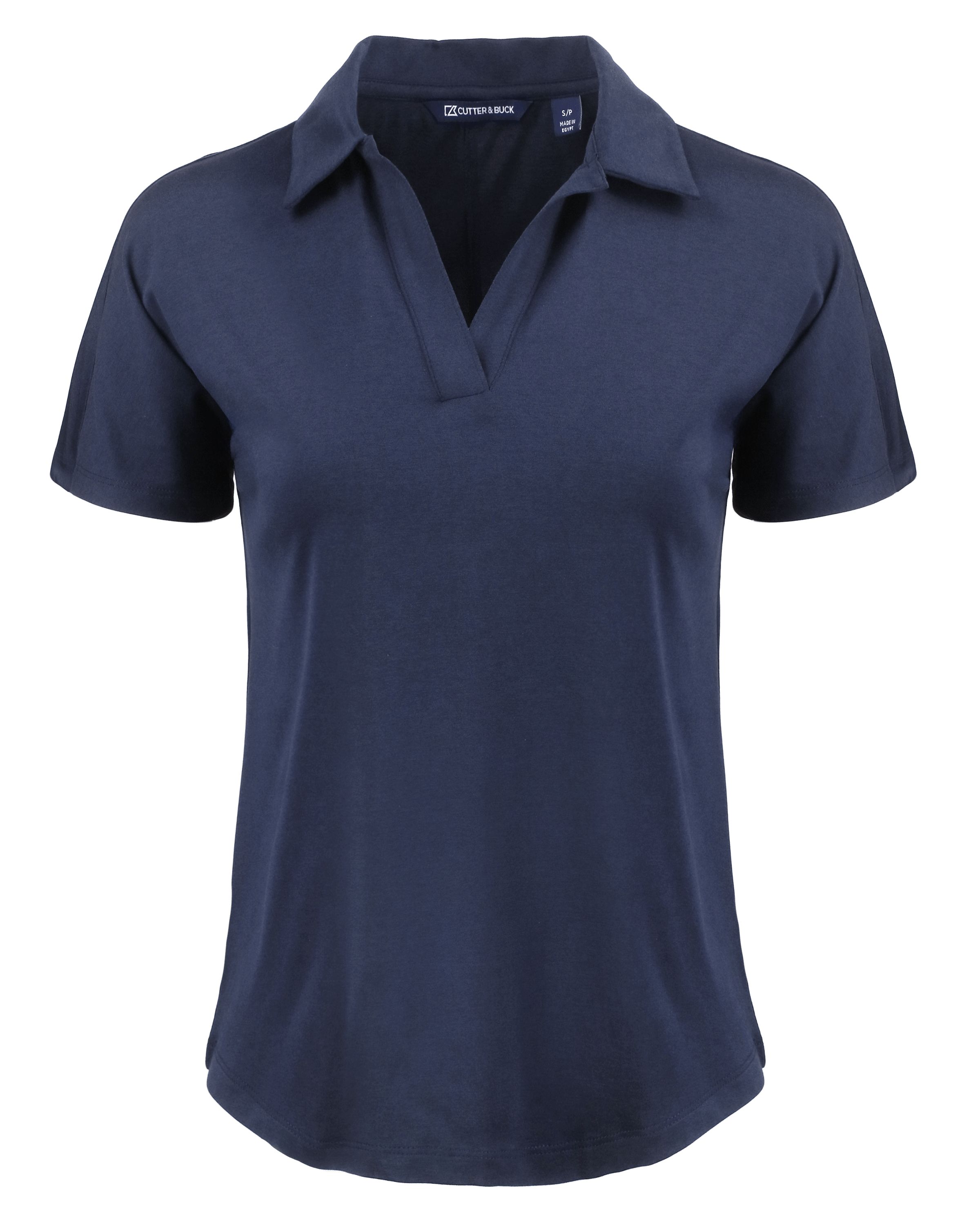 The exceptionally soft, iconic and sustainable Cutter & Buck Coastline Recycled Double Peached Womens Dolman Polo is designed to be your favorite versatile v-neck polo perfect for your active lifestyle. Crafted for comfort, move effortlessly in the lightweight, breathable double peached stretch performance jersey feeling airy and weightless on body. Made from GRS Certified post-consumer recycled polyester, ideal sun protective layer perfect for golf, tennis, WFH, travel, the office or wherever your adventure takes you. Easy to wash and wear, favorite tee shirt comfort looks great right out of the dryer.