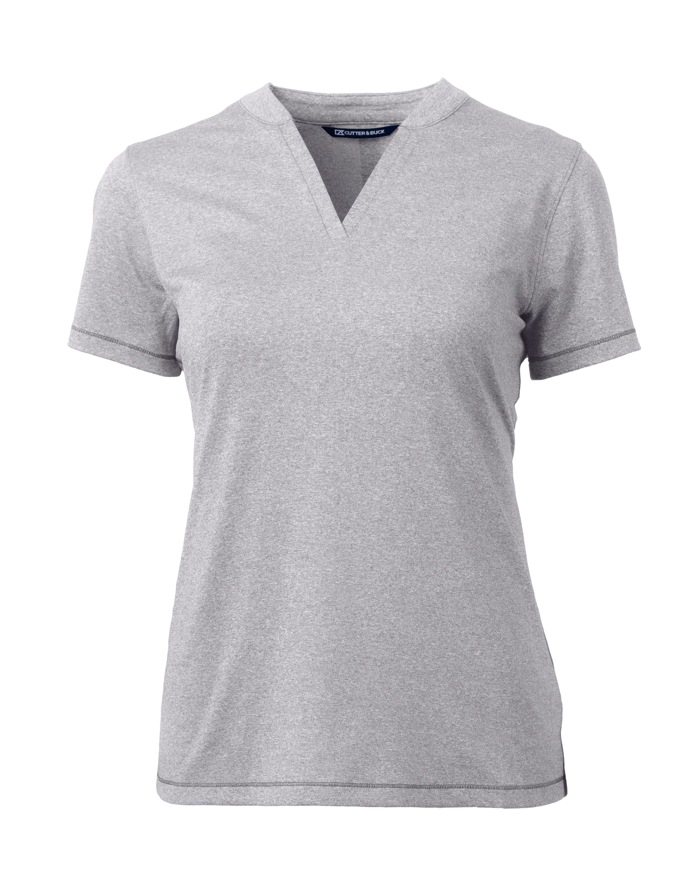 The iconic short sleeve Cutter & Buck Forge Recycled Four-Way Stretch Heathered Womens Blade Top is engineered with stretch for exceptional versatility, designed to be your favorite super soft women's short sleeve polo shirt for the golf course, the clubhouse, the office or a night out. Supremely soft and stretchy, the high quality fabric is a perfect blend of DryTec polyester and spandex, giving you ultimate performance, comfort, and style. - 80% Recycled Polyester, 16% Polyester, 4% Spandex Heathered Jersey - Matte fabric finish - UPF 50+ UV Sun Protection - Moisture-wicking - Self fabric blade collar with v-neckline - Tonal exterior stitch details - Machine Wash - Imported