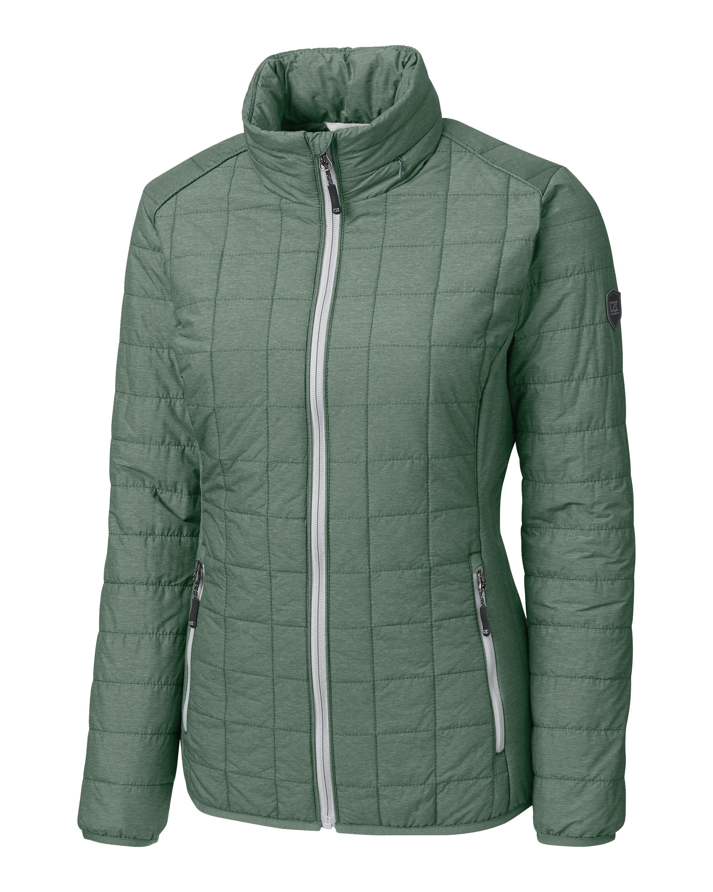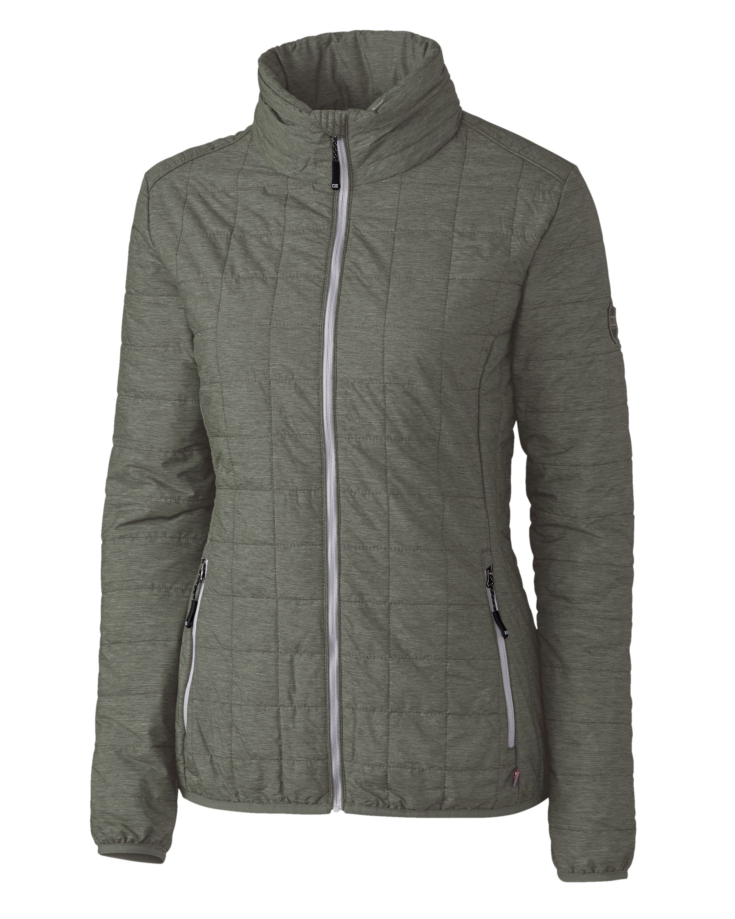 The iconic and sustainable Cutter & Buck Rainier Recycled Insulated Puffer Womens Full Zip Jacket is engineered from lightweight, recycled, down-alternative insulation for exceptional four season versatility, designed to be your favorite quilted womens full zip eco-friendly puffer jacket for golf, skiing, hiking, walking, and your other epic everyday adventures. The Rainier’s Primaloft® Silver Insulation is crafted from 70% recycled polyester, keeping you warm so you can stay outside year round and make a difference for the planet.