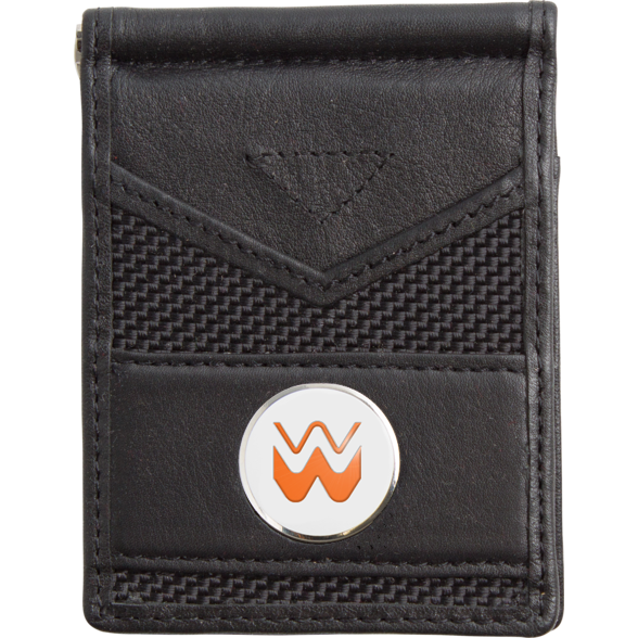 Pockets for credit cards and locking interior spring clip money holder. Permanently affixed ball marker that features our brand.
