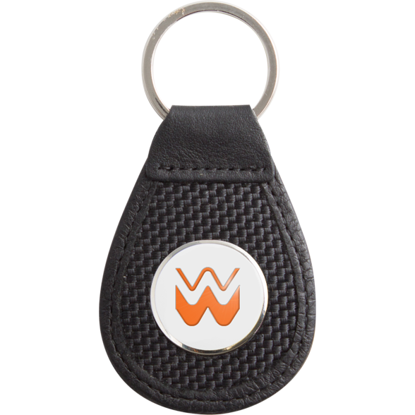Classic leather tear drop key ring. Permanently affixed ball marker that features our brand.