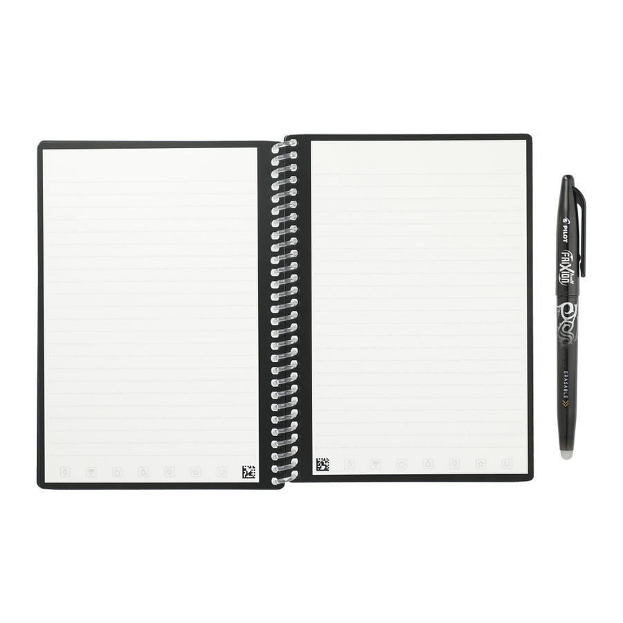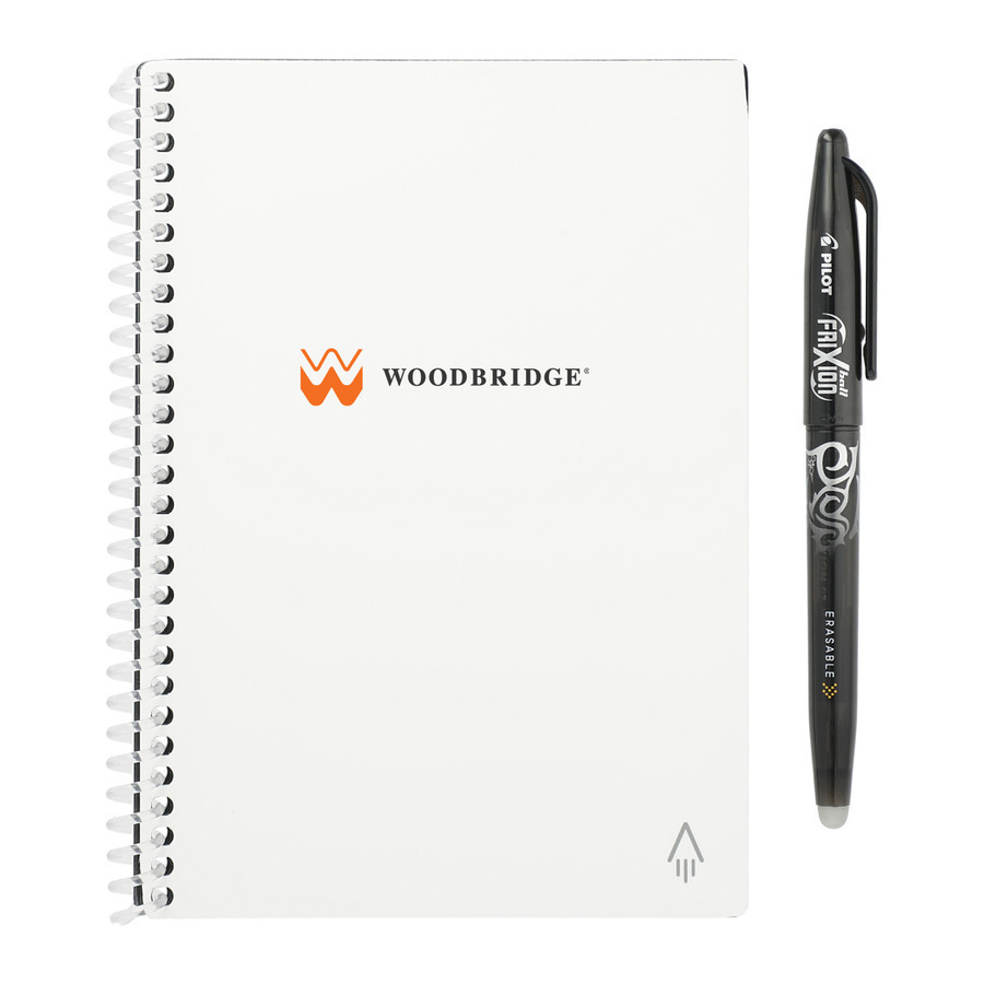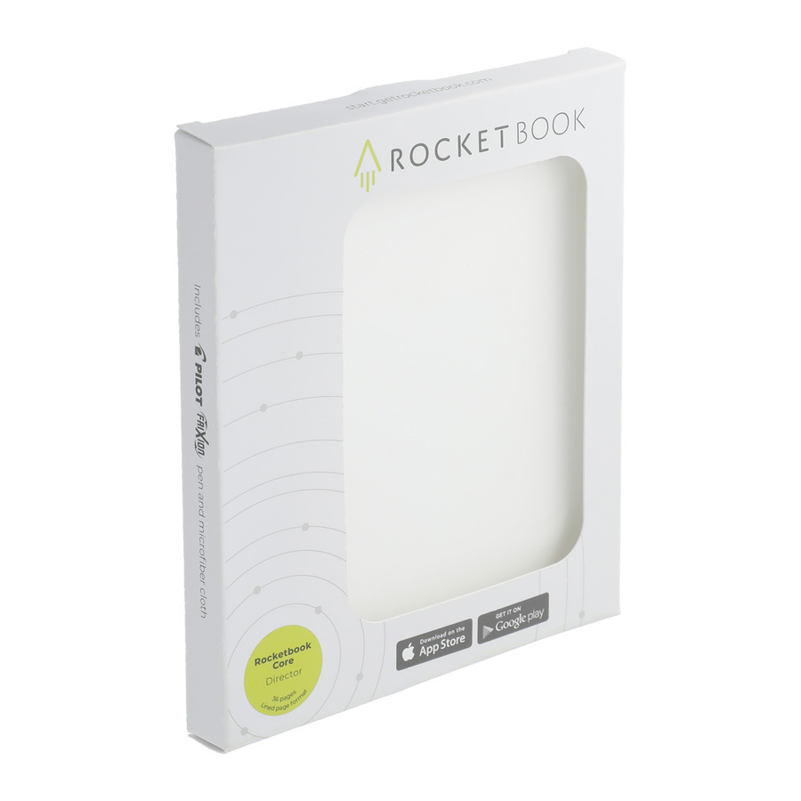 The Rocketbook Core Director Notebook is designed for every office or workshop. The synthetic, white-lined college-ruled paper lets you write smoothly with a Pilot Frixion pen, then magically wipe it clean with a damp cloth to reuse again and again.